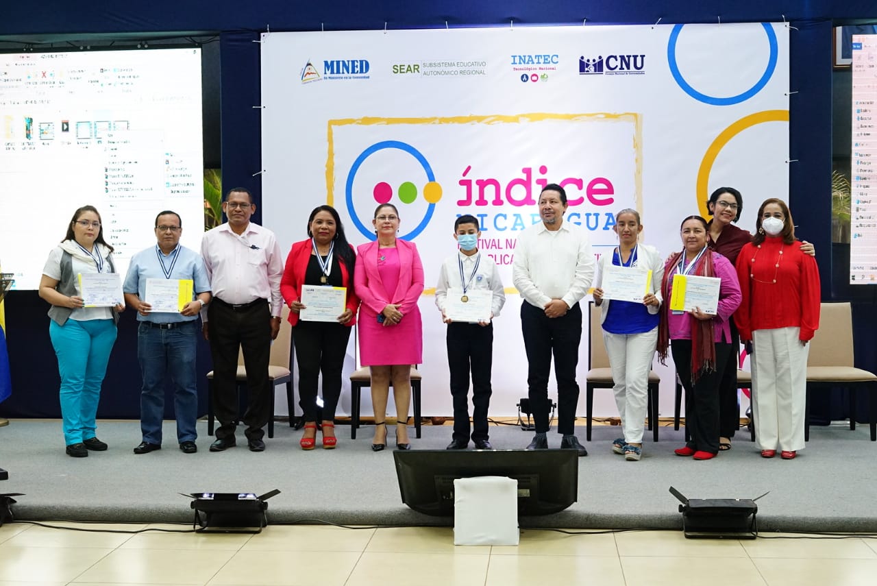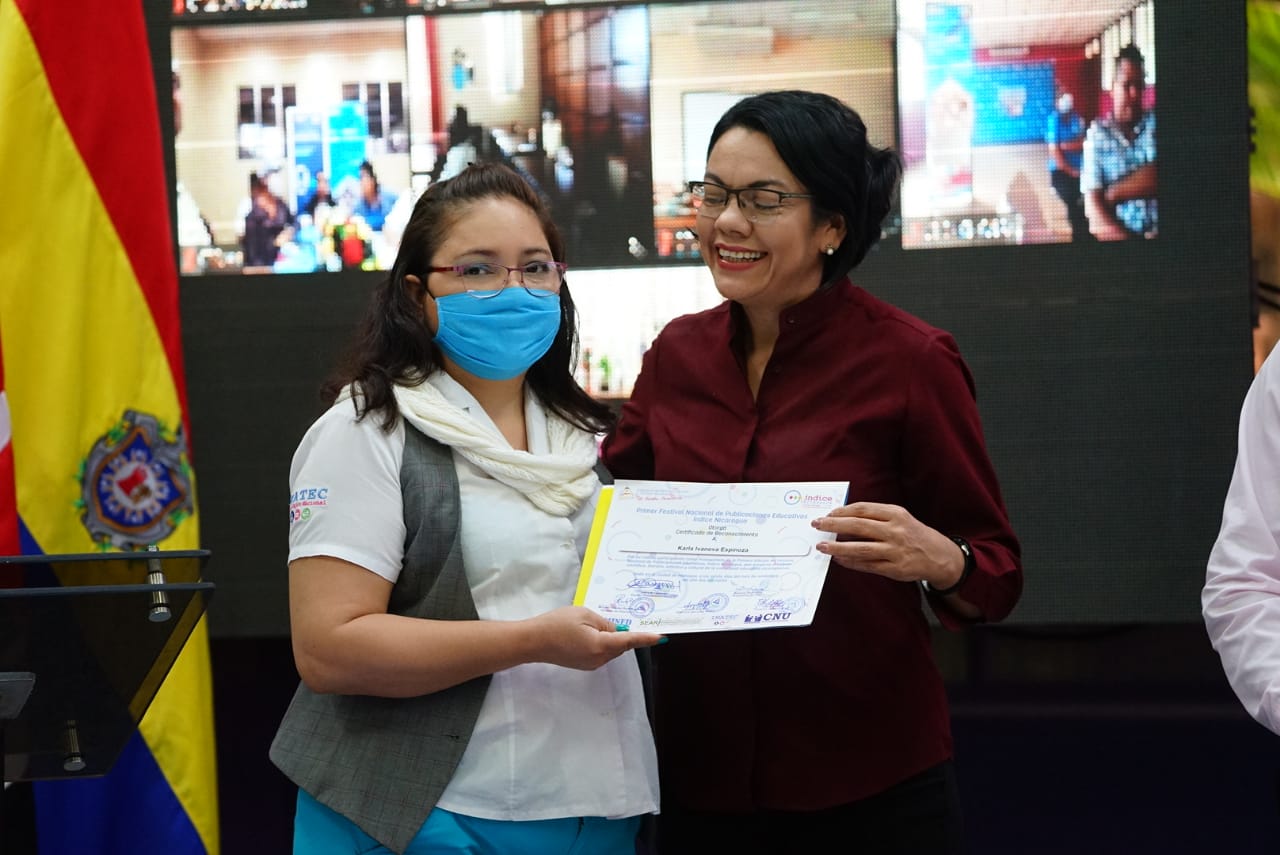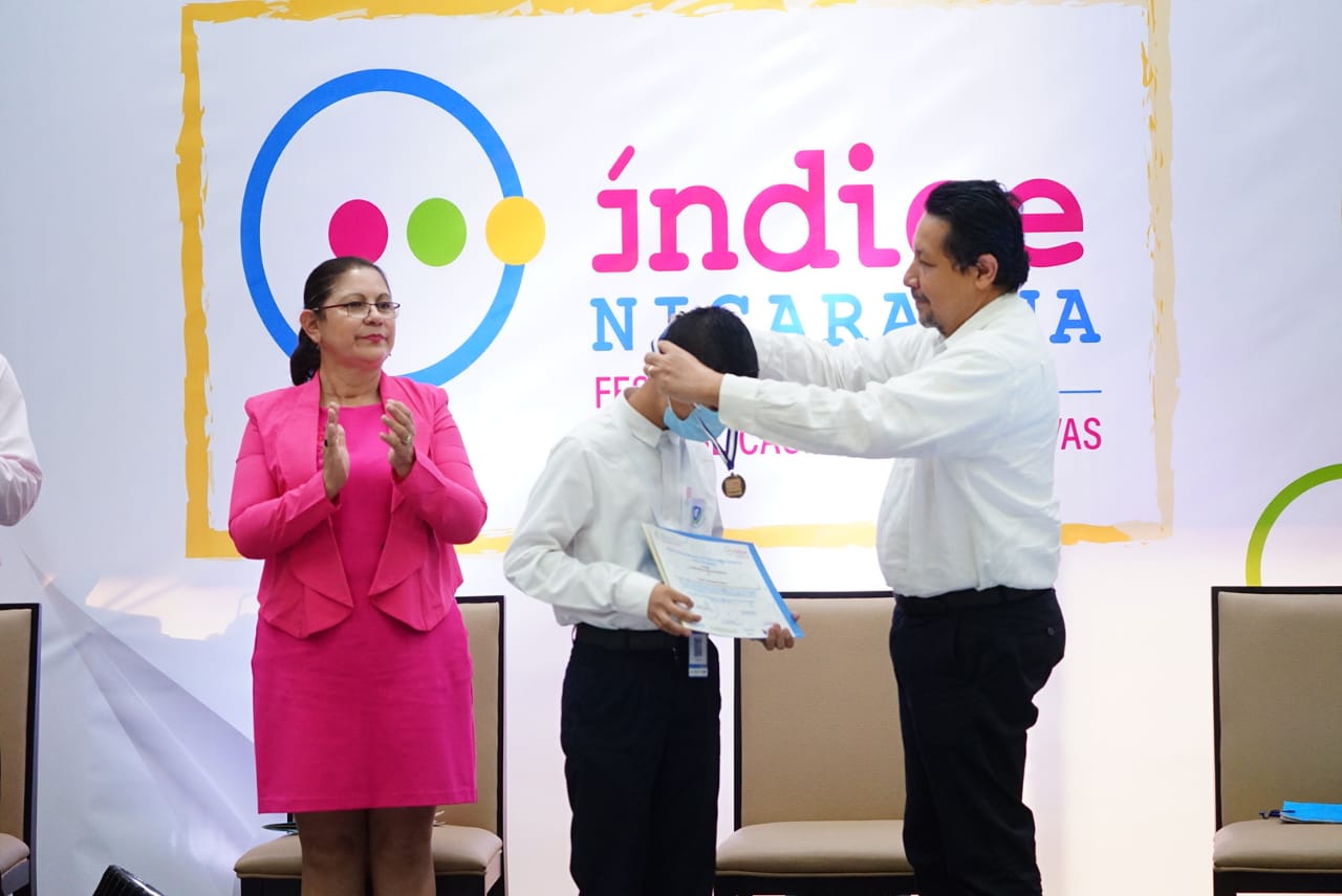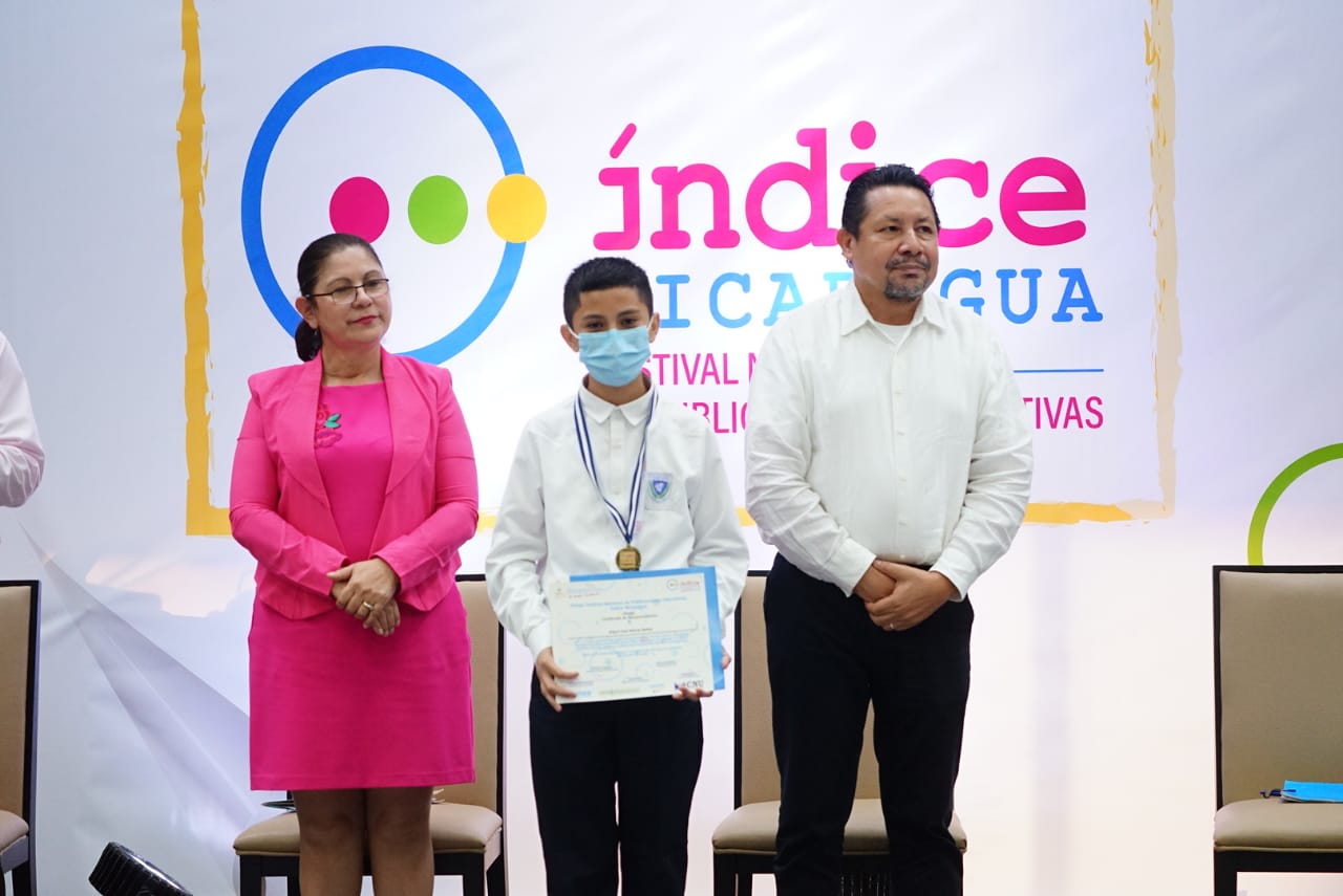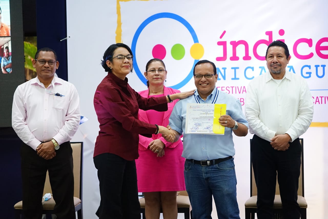 Al caer la tarde y después de realizar diferentes actividades pedagógicas, innovadoras, científicas, literarias, culturales y artísticas, se realizó la clausura del Primer Festival Nacional de Publicaciones Educativas, Índice Nicaragua, con la entrega simbólica de reconocimientos y medallas a protagonistas participantes de los diferentes subsistemas educativos que formaron parte de los 930 autores que participaron de manera presencial y virtual.